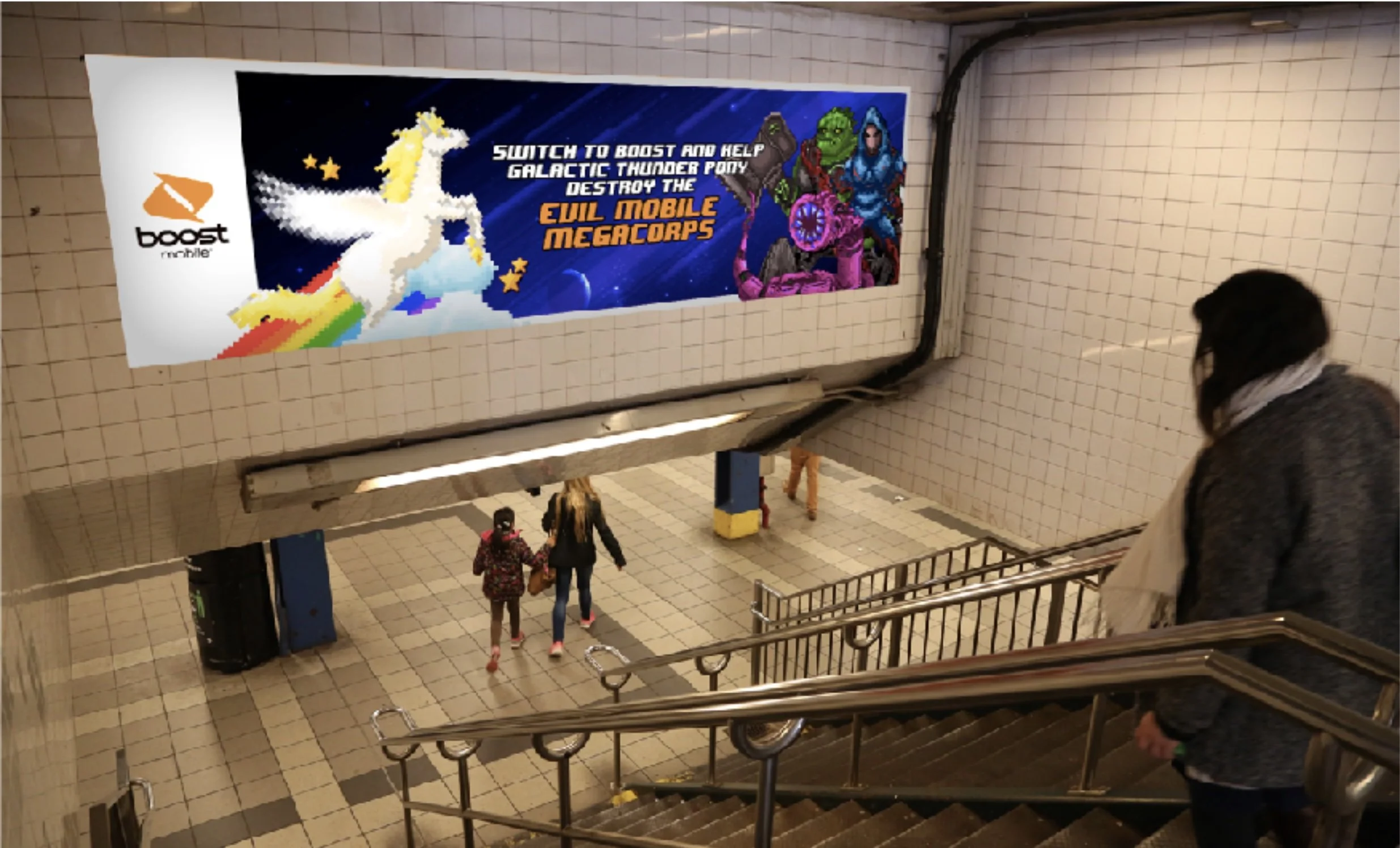 To launch the Galactic Thunder Pony game, we took over an entire subway station. Every surface had Boost-branded posters touting the free mobile game in Sanpchat.
